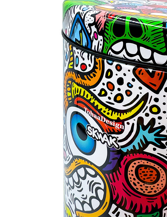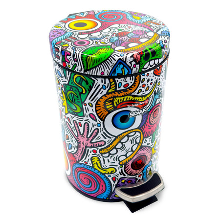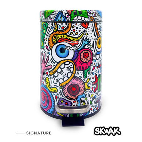 Crazy Maniac ist ein Design für einen Badezimmermülleimer originell, spritzig und farbenfroh, entworfen vom talentierten französischen Künstler SKWAK, der weltweit ausstellt. Für TohaaDesign hat SKWAK dieses exklusive Werk geschaffen, dessen ultrafarbige Energie einen oft vernachlässigten Ort erobert.