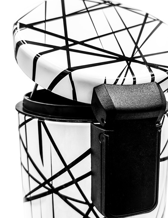 This bin is part of a complete Arrow collection, which also includes the toilet seat, the brush, and other matching accessories, for a perfectly harmonized bathroom.