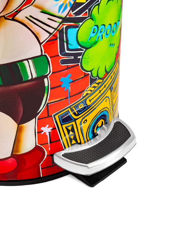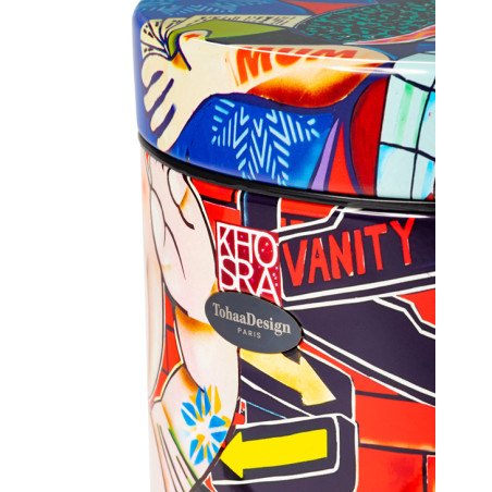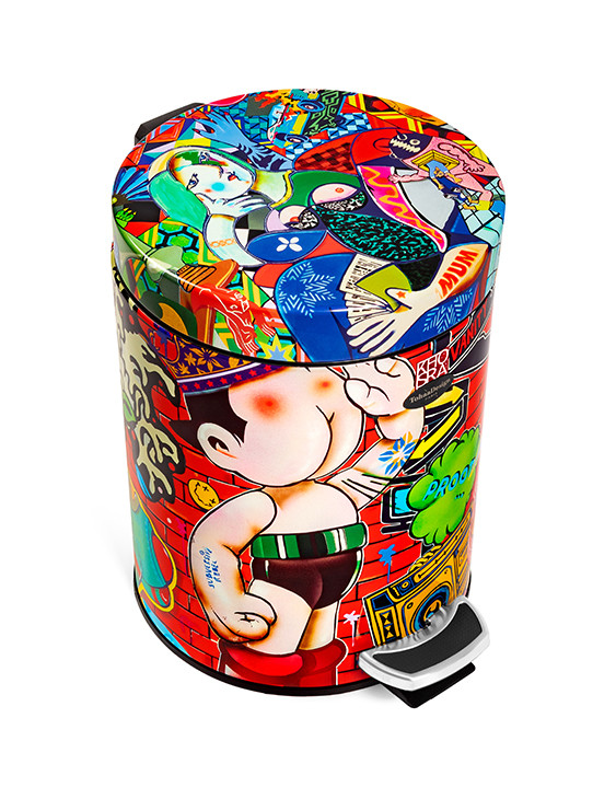 Esta original y colorida papelera de baño nos transporta al universo pop y dinámico del talentoso Guive Khosravi. "Vanity Fair", diseñada para TohaaDesign, es una explosión de tonos vistosos y diseños muy originales.